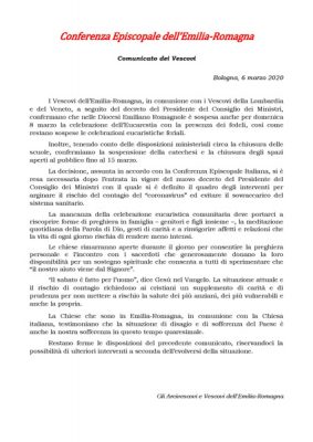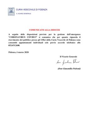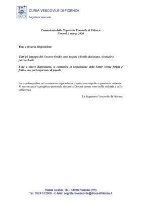 Comunicato dalla Segreteria Vescovile di Fidenza – 6 marzo 2020