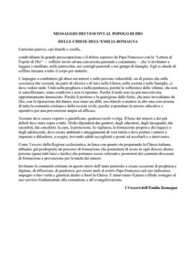 Carissimi parroci, cari fratelli e sorelle, condividiamo la grande preoccupazione e il dolore espresso da Papa Francesco con la “Lettera al Popolo di Dio” — sofferto invito ad una conversione personale e comunitaria — che vi invitiamo a leggere e meditare, nelle parrocchie, nei consigli pastorali e nei gruppi di famiglie. Egli ci chiede di soffrire insieme a tutto il corpo per aiutarlo. …