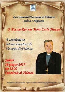 16 luglio 2017 Ingresso Vescovo Ovidio Programma I TAPPAPrevisto arrivo del Vescovo Ovidio al casello autostradale di Fidenza alle ore 15.15. In auto e con la scorta del Carabinieri della Città raggiunge la Chiesa di San Michele Arc. II TAPPADalla Chiesa di San Michele Arc. inizia il percorso a piedi del Vescovo – […]