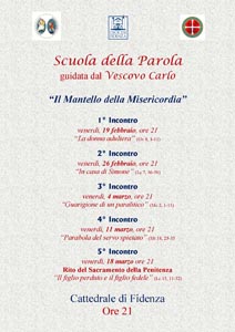 Scuola della Parola guidata dal Vescovo Carlo “Il Mantello della Misericordia” 1° Incontro venerdì, 19 febbraio, ore 21 “La donna adultera” (Gv 8, 1-11) 2° Incontro venerdì, 26 febbraio, ore 21 “In casa di Simone” (Lc 7, 36-50) 3° Incontro venerdì, 4 marzo, ore 21 “Guarigione di un paralitico” (Mc 2, 1-11) […]