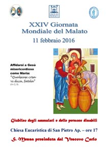 Presso la Chiesa Eucaristica di San Pietro Ap. in Fidenza alle ore 17.00 si terrà la S. Messa per il Giubileo degli ammalati e delle persone disabili presieduta dal Vescovo Carlo
