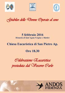 Il 5 Febbraio 2016 – presso la Chiesa Eucaristica di S. Pietro Ap. in Fidenza – si terrà il Giubileo delle Donne Operate al seno