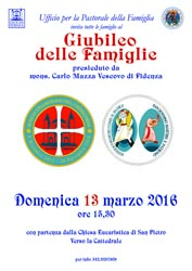 Giubileo delle famiglie presieduto da Mons. Carlo Mazza, Vescovo di Fidenza 13 Marzo 2016 Ritrovo presso la Chiesa Eucaristica di S. Pietro Ap. in Fidenza con partenza alle ore 15.30 e conseguente arrivo in Cattedrale. Partecipate numerosi!!!!!!!!!!!