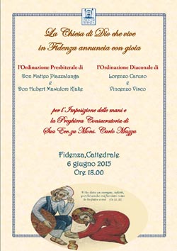 Il 6 giugno 2015 alle ore 18.00, Sua Ecc.za Mons. Carlo Mazza ordinerà 2 nuovi sacerdoti e 2 diaconi permanenti.