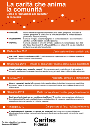 • FINALITÀ: Il corso intende sviluppare competenze utili a ideare, progettare, realizzare e valutare programmi di animazione di comunità all’interno di contesti ecclesiali (parrocchie) e sociali (territorio).