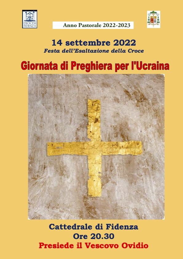 1 Settembre 20221 Settembre 2022NewsGiornata di preghiera per l’Ucraina 14 settembre 2022 Festa dell’Esaltazione della Croce Cattedrale di Fidenza Ore 20.30 Presiede il Vescovo Ovidio
