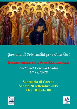 6 Settembre 2019NewsGiornata di Spiritualita’ per i Catechisti Giornata di Spiritualità per i Catechisti Discernimento e Vita Ecclesiale Lectio del Vescovo Ovidio Mt 18,15-20 Santuario di Careno Sabato 28 settembre 2019 Ore 10.00-16.00