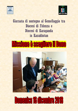 28 Novembre 2018NewsMissione è scegliere il Dono Giornata di sostegno al Gemellaggio tra Diocesi di Fidenza e Diocesi di Karaganda in Kazakhstan MISSIONE E’ SCEGLIERE IL DONO Domenica 16 dicembre 2018