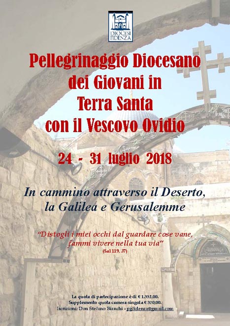 (Sal 119, 37) Iscrizioni: Don Stefano Bianchi – pgfidenza@gmail.com Ecco il programma del viaggio allegatoLa locandina allegato